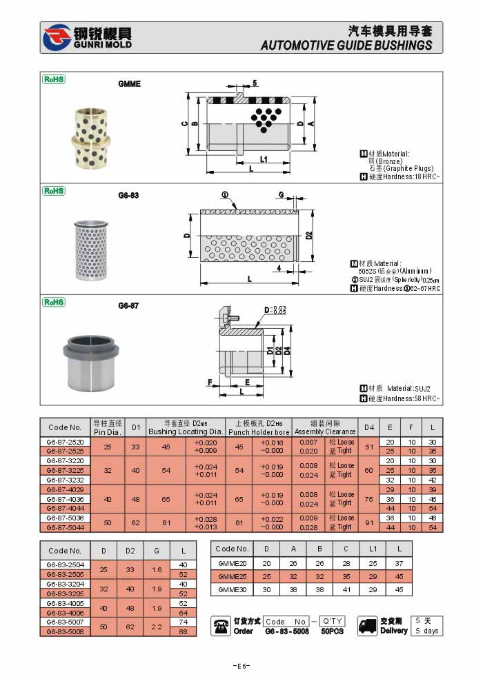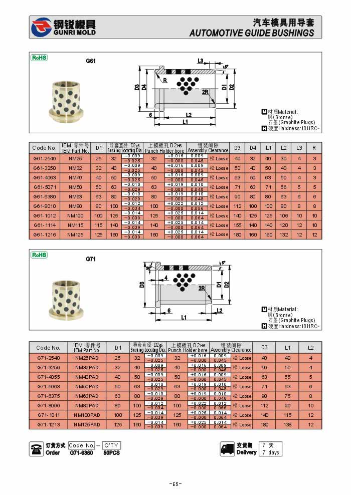 美標汽車模用自潤滑石墨導套G61 G71 GMME