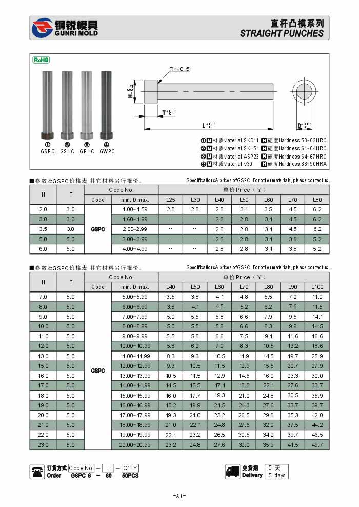 直桿凸模GSPC GSHC GPHC GWPC