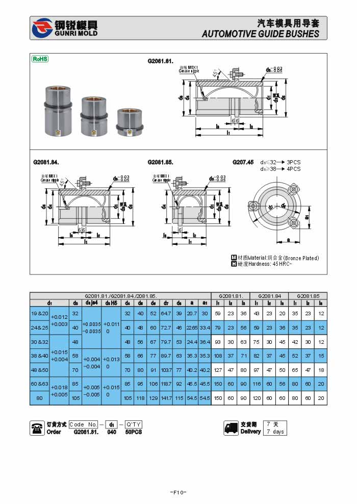 德標汽車模用銅合金導套G2081.81. G2081.84. G2081.85.