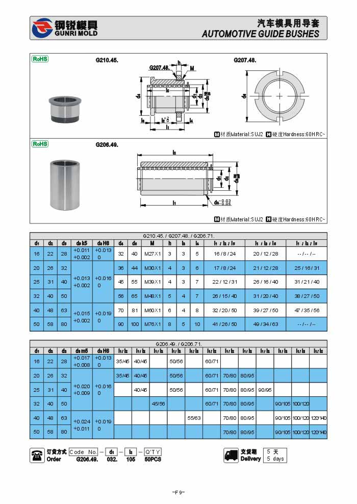 德標汽車模用鋼珠導套G206.49. G210.45.