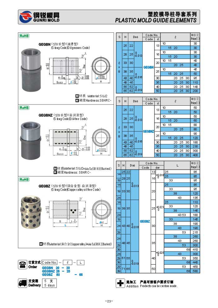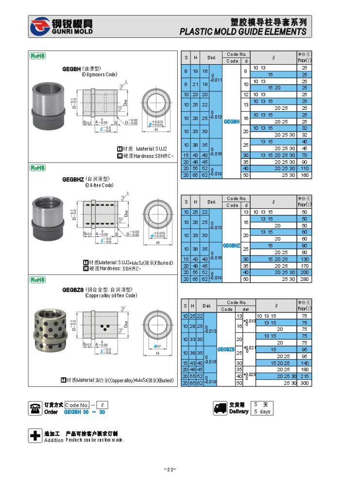 日標塑膠模推板導套GEGBHZ GEGBH GEGBZS GEGBN GEGBNZ GEGBZ