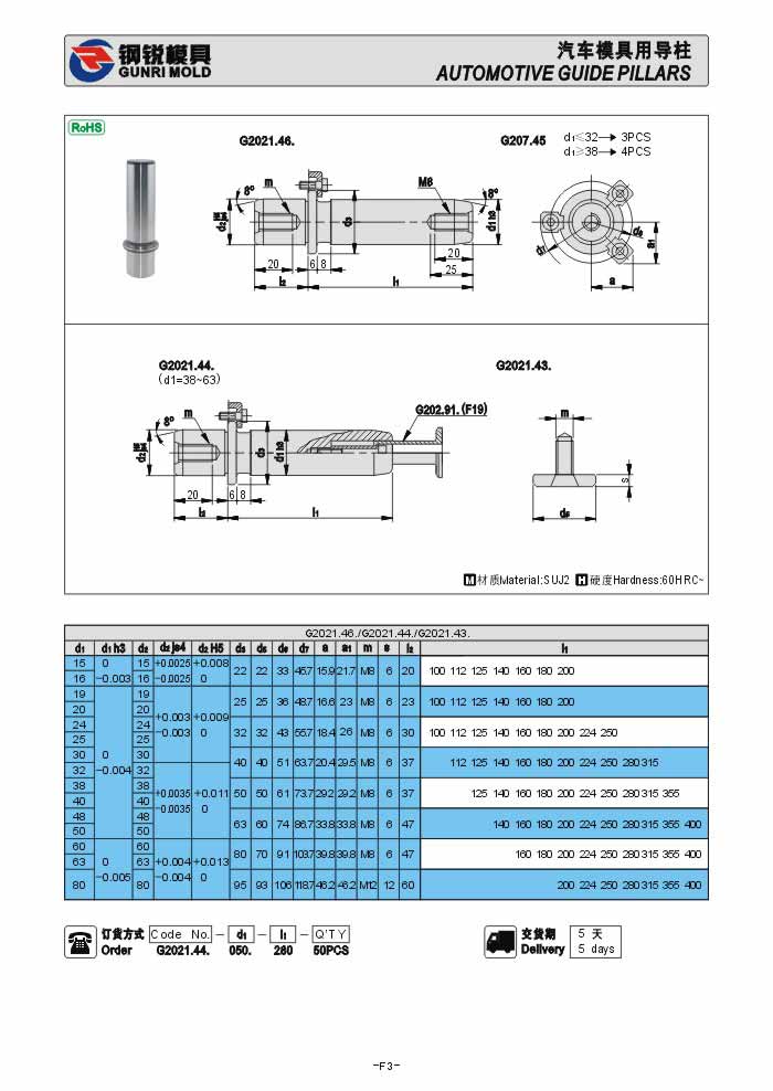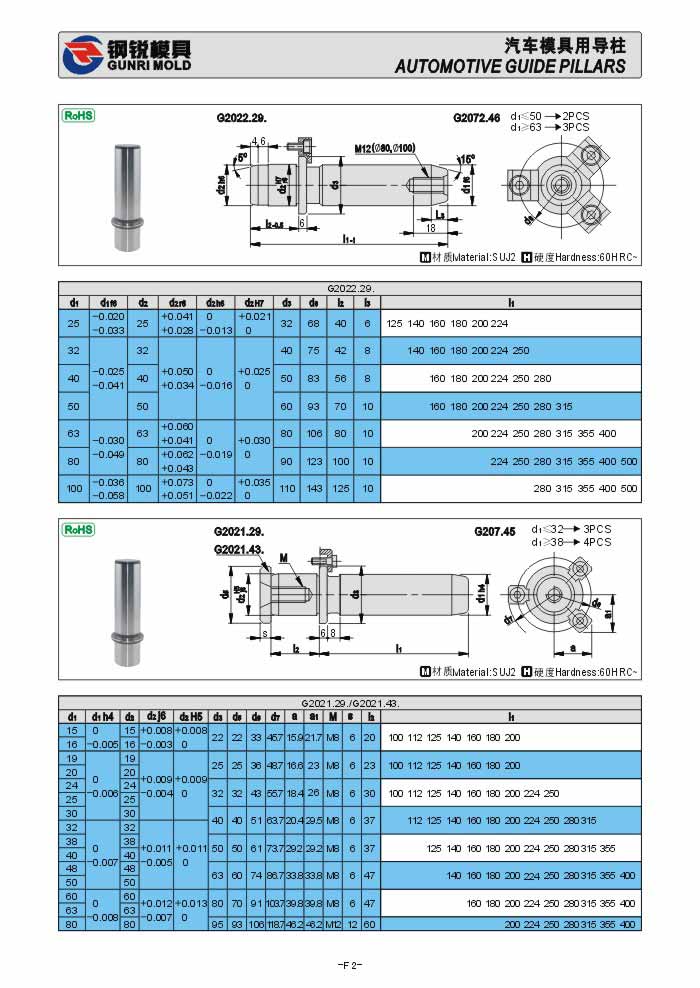 德標(biāo)汽車模用導(dǎo)柱G2022.29. G2021.29. G2022.44. G2022.46.